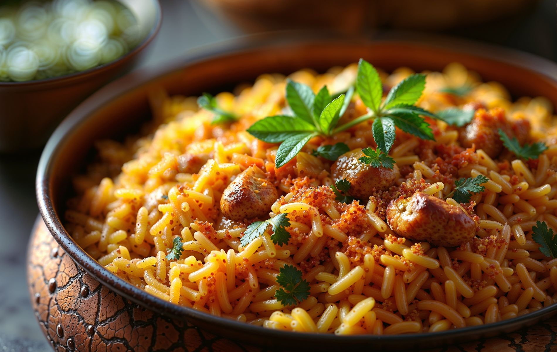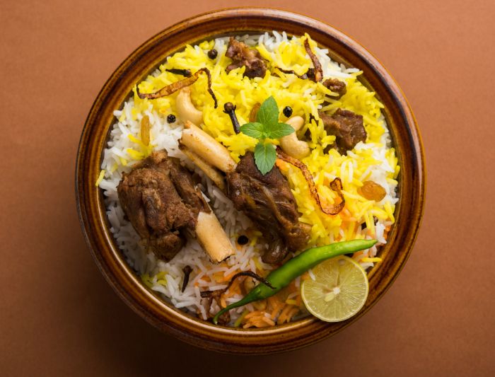 Aromatic basmati rice layered with tender mutton, cooked with spices and herbs.
